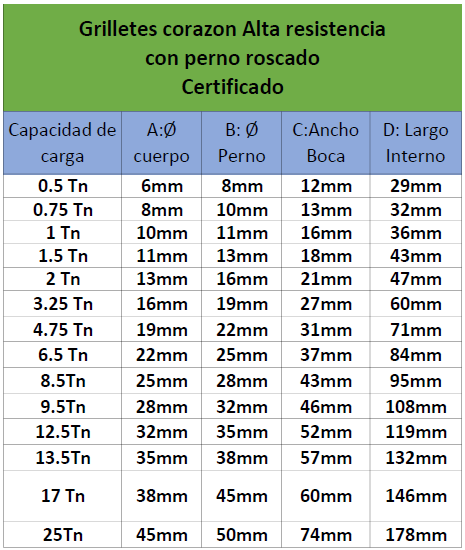 Grillete corazon Alta resistencia con Perno, seleccione su medida.