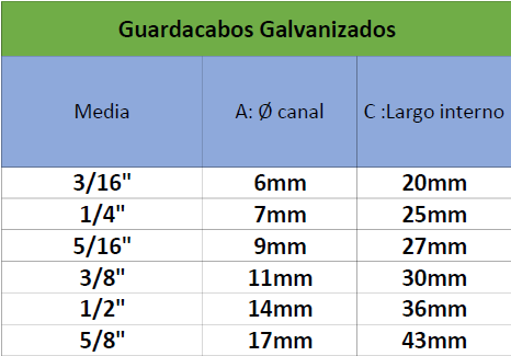 Guardacabos Liviano Galvanizados, para soga y cable.